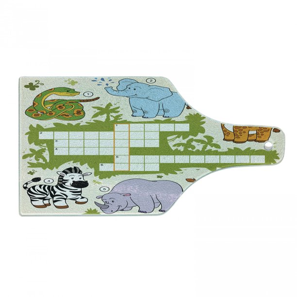 Word Search Puzzle Cutting Board Colorful Crossword Game For Wild Jungle Safari Animals Grid Decorative Tempered Glass Cutting And Serving Board Wine Bottle Shape Multicolor By Ambesonne Walmart Com